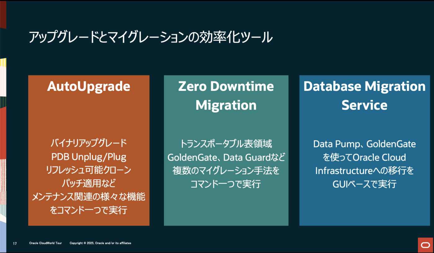 Oracle Databaseのアップグレードやマイグレーションには多くの機能やツールをお使いいただくことができます。